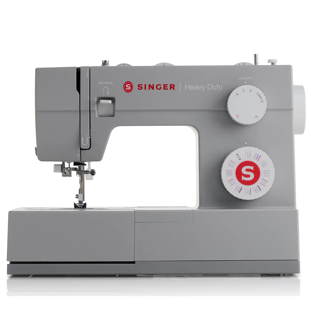 Conveniently located on the front of the Singer HD4452 are two dials: Stitch Selection and Stitch Length. The Stitch Width dial is located on top of the machine. Simply select a stitch and easily adjust the stitch length and width.