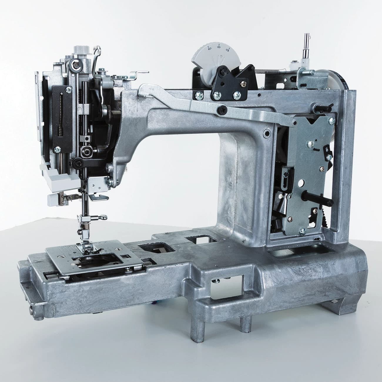 Over the years, some machines have incorporated less metal and more plastic inside. The internal metal structure of the machine offers lasting reliability. A metal body is vital for keeping the machine from vibrating while completing heavy-duty projects, and the stainless steel bedplate provides a smooth surface that allows the fabric to glide as you sew.