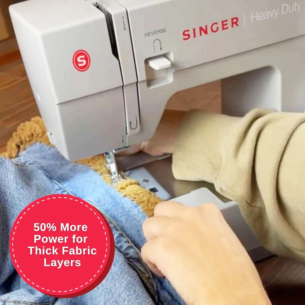 The Singer Heavy Duty 4452 Mechanical Sewing Machine features an industrial-level strength design with 32 built-in stitches, a full metal frame, a built-in needle threader, an extra high presser foot lifter, a free arm, a fully automatic one-step buttonhole, more! By sewing at a speed of up to 1100 stitches per minute, you can complete more tasks quickly. Create unique costumes, outfits, home decor, and more! With its powerful motor, the Singer Heavy Duty 4452 is a workhorse machine ideal for users of all skill levels, whether heavy-duty material or delicate fabrics.