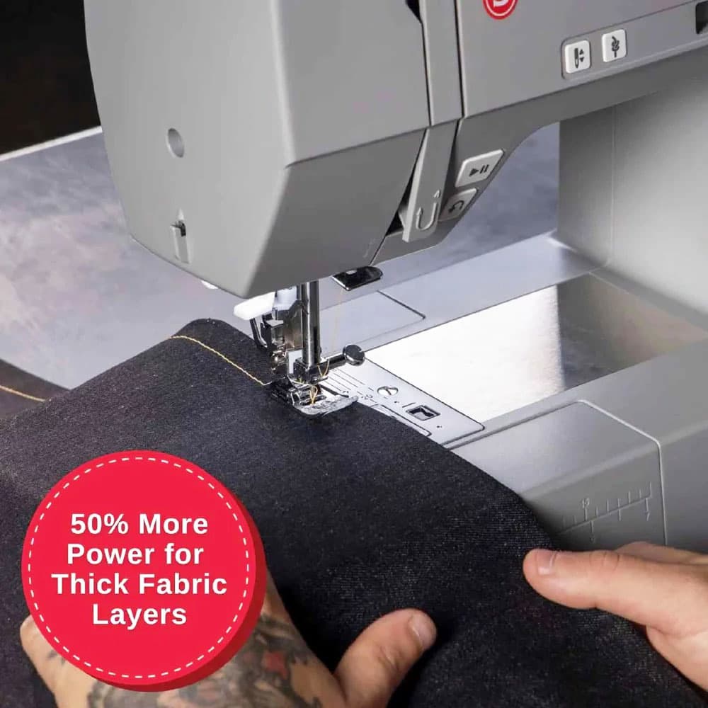 The Singer Heavy Duty 6700C Sewing Machine has a workhorse design. This machine features ten built-in stitches, a heavy-duty metal frame, a built-in needle threader, a top drop-in bobbin, a one-step buttonhole foot, and more! By sewing up to 1100 SPM (stitches per minute), the Singer HD6800C allows you to finish tasks more efficiently and precisely. This machine has endless possibilities, and no project is too small! The Singer HD6700C is ideal for all skill levels and perfect for heavy-duty or lightweight fabric.