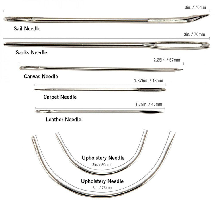Singer has put together a Heavy Fabric Repair Kit that is a must-have for sewists on-the-go. The heavy-duty thread and needles are perfect for patching tents, upholstery, canvas, rugs, and more. The nickel-plated steel needles are strong and durable. The Heavy Fabric Repair Kit contains a sail needle, a canvas needle, a carpet needle, a sacks needle, a leather needle, and two upholstery needles. The canvas and leather needles feature triangular shafts to help prevent snagging. This handy kit, from Singer, also includes two 30-yard spools of indoor/outdoor thread in both black and white. The bonus needle puller helps to grip needles when working with sturdy, thick fabrics.