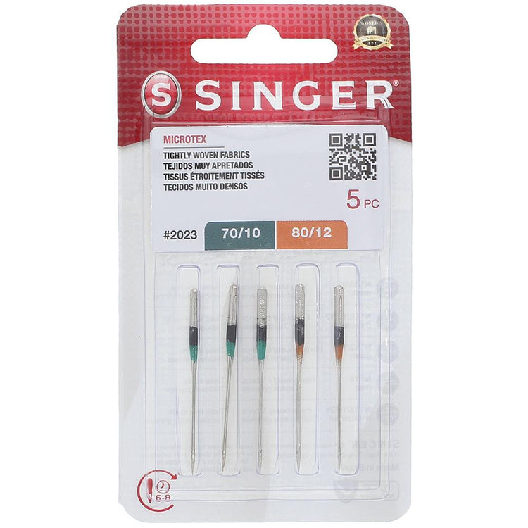 These Singer Microtex Needles are five multi-sized machine needles with a narrow point and finely honed tip for superior sharpness. These needles produce flawless, clean stitches when exactness is essential. The selection of sizes will cover your lightweight sewing needs: 90/14 for "heavier" fabrics, 80/11 for light, woven material, like silk; the 70/09 for use on sheer fabrics, and the 60/08 for other fine materials. These Singer Microtex Needles can be used with Singer, Kenmore, and Brother machine brands.