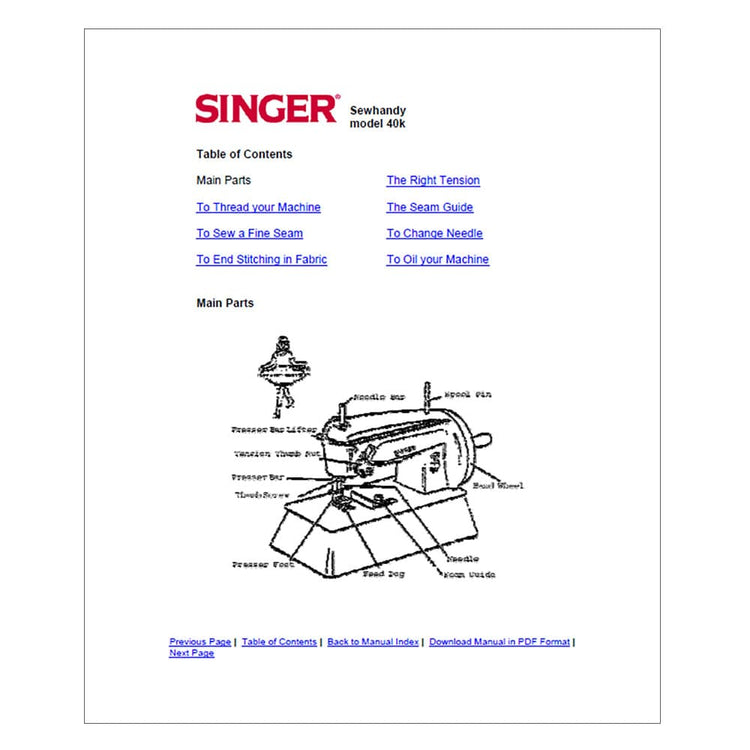 Singer Sewhandy 40K Sewing Machine Instruction Manual (Model ESE2) - 12 Pages. Lost your sewing machine's manual? We've got you covered! This instruction manual is the ultimate guide to unlock the full potential of your Singer Sewhandy 40K. No more confusion or frustration—just clear, concise instructions right at your fingertips. What's inside? Everything you need to know from setting up to mastering your sewing machine and all its features. The physical copy of the instruction manual is a soft-cover printed photocopy.