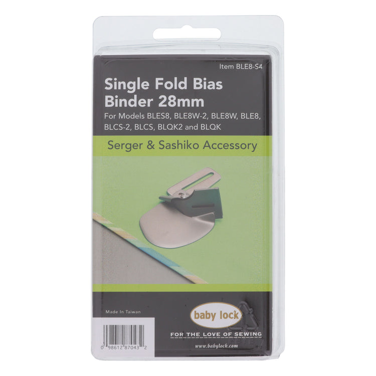 This binder will turn the top edge of unfolded bias binding under while allowing the lower edge to remain straight, enclosing the edge of the fabric. Download the instructions on how to use this foot here.