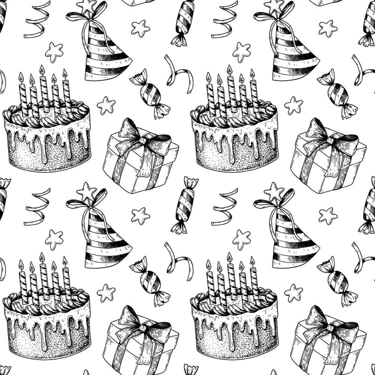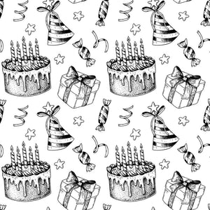 The Black and White Sketched Birthday Party Candy Fabric is part of the Birthday Party Fabric Collection printed by Sew Creative Fabrics. Digitally Printed on 100% cotton.