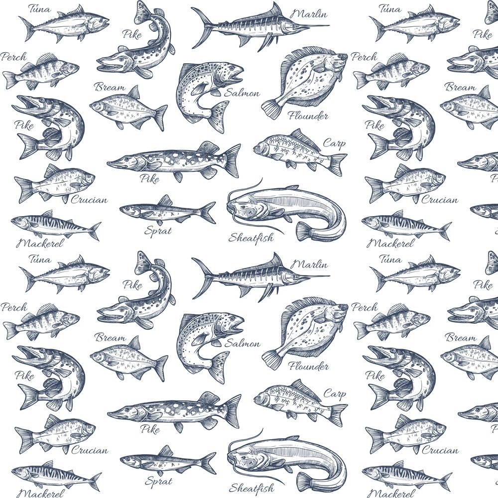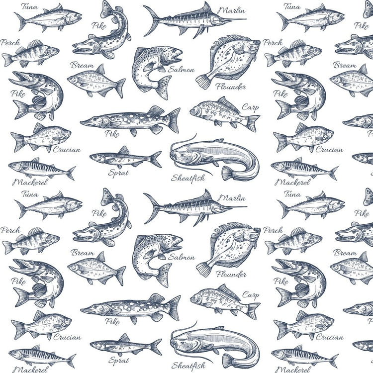 The Sketched Fresh & Salt Water Fish Fabric is a part of the Animal Fabric Collection printed by Sewing Parts Online. Digitally Printed on 100% cotton and measures 44-45" wide.