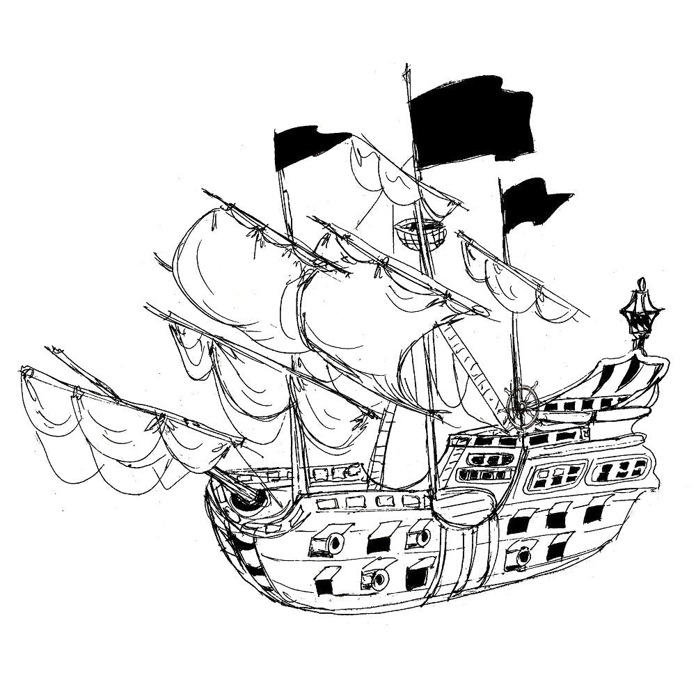The White Sketched Pirate Ship Fabric Panel is part of the Pirate Adventure Fabric Collection printed by Sewing Parts Online. Digitally Printed on 100% cotton. This panel is available in 6 different sizes:
