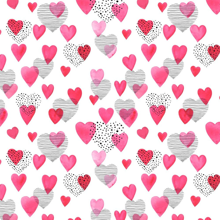 The Sketched Watercolor Hearts Fabric is part of the Be Mine Fabric Collection printed by Sew Creative Fabrics. Digitally Printed on 100% cotton.