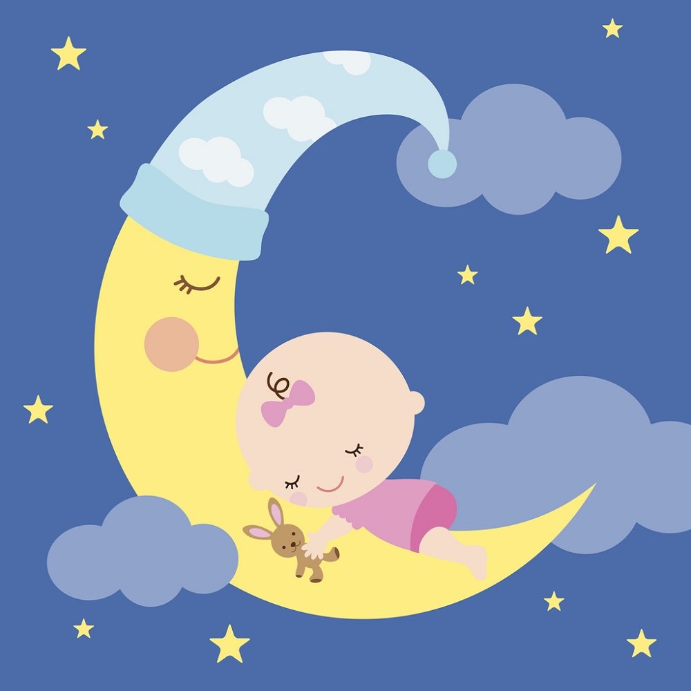 Sleeping Baby Girl On The Moon Fabric Panel Details