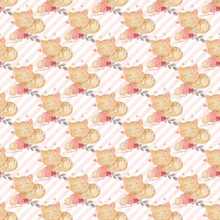 The Pink Sleeping Cat on Striped Fabric is part of the Sweet Cats Collection printed by Sewing Parts Online. This fabric is digitally printed on 100% cotton.