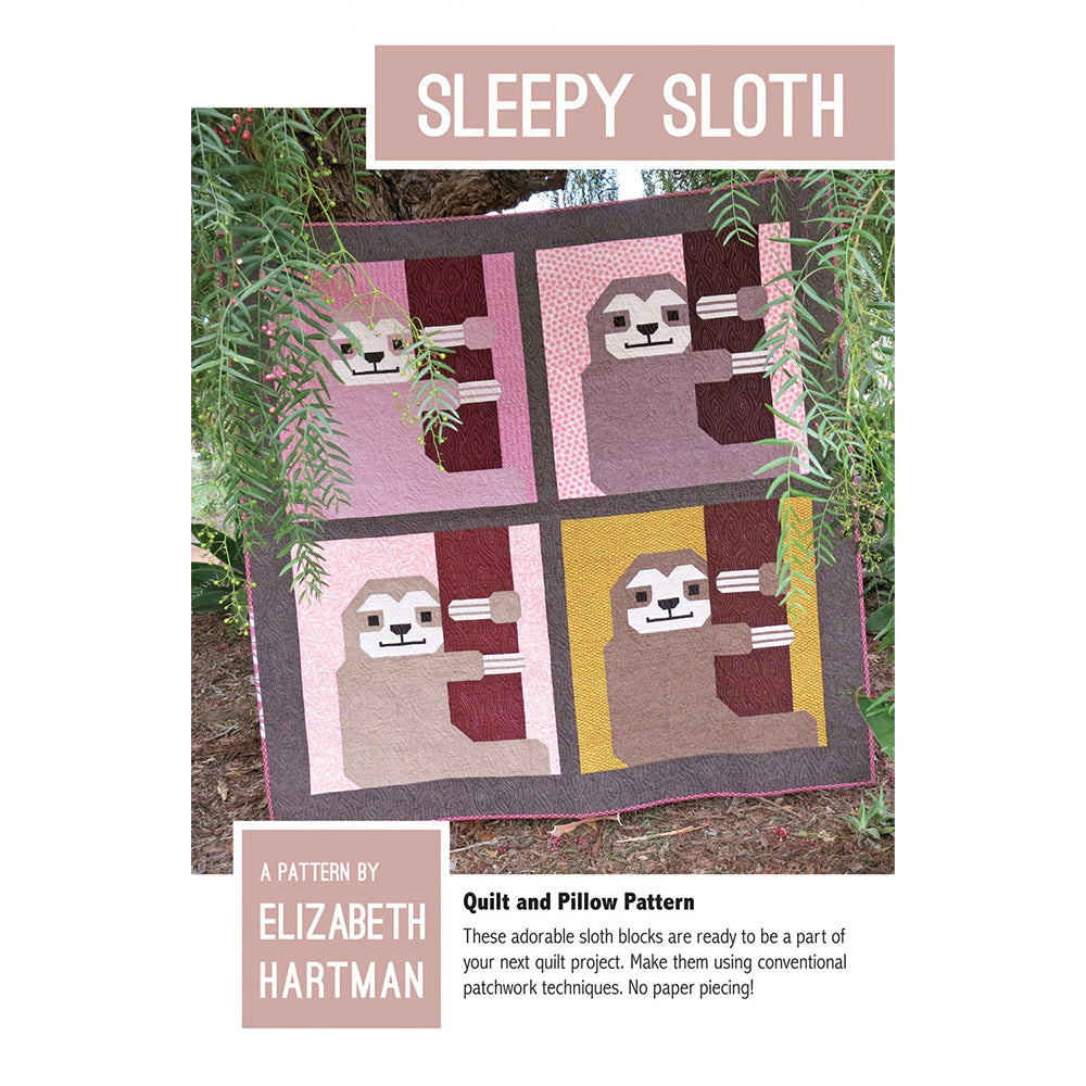 Designed by Elizabeth Hartman, the Sleepy Sloth Quilt Pattern is a simple design that uses conventional patchwork techniques. Each block can be made from fat quarters, fat eighths, or scrap fabric. The sensational Sloth Quilt Pattern can also be made into a 24" square pillow. Choose from two sizes of quilts, a 58" square one or an 84" square. These two sizes are ideal for both children and adults who adore these cute animals. Included with the Sleepy Sloth Pattern is a full set of instructions and a list of fabric requirements.