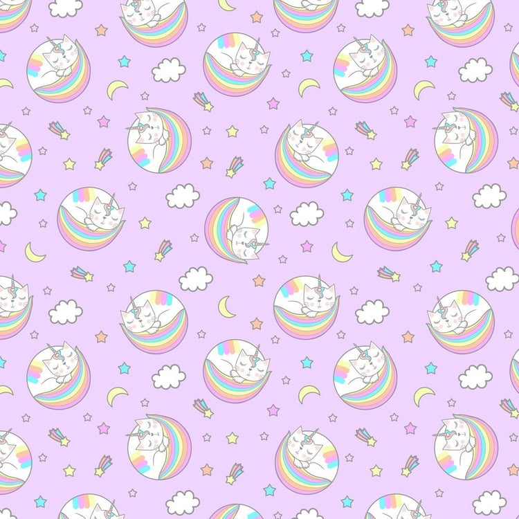 The Sleepy Unicorn Cat Fabric is a part of the Kid's PlayTime Fabric Collection printed by Sew Creative Fabrics. Digitally Printed on 100% cotton and measures 43-44" wide. Sew Creative Fabrics prints are only available through Sewing Parts Online, not sold in stores or anywhere else online. * Proudly Manufactured in Dickson, Tennessee USA! *