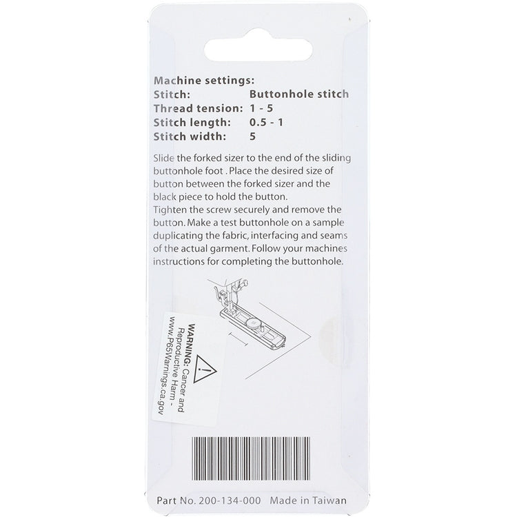 Sliding Buttonhole Foot with Sizer, Janome #200134000