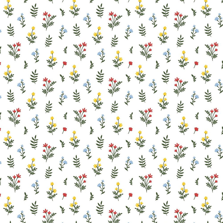 The White Small Flowers Of The Meadow Fabric is a part of the Trendy Florals Fabric Collection printed by Sew Creative Fabrics. Digitally Printed on 100% cotton and measures 42-43" wide.