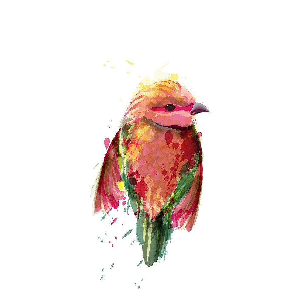 Small Tropical Bird Fabric Panel - Red/Green Details