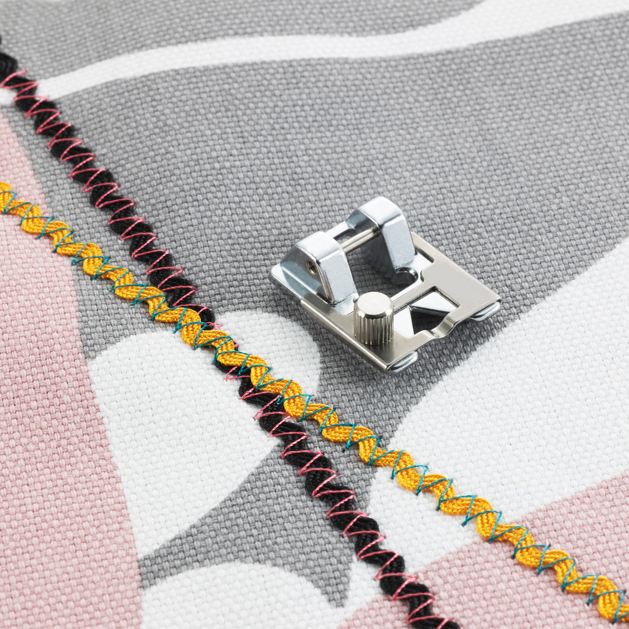 Add elegant trims with precision using the Braiding Foot—perfect for attaching cords, ribbons, and braids up to 7mm wide with ease and accuracy.