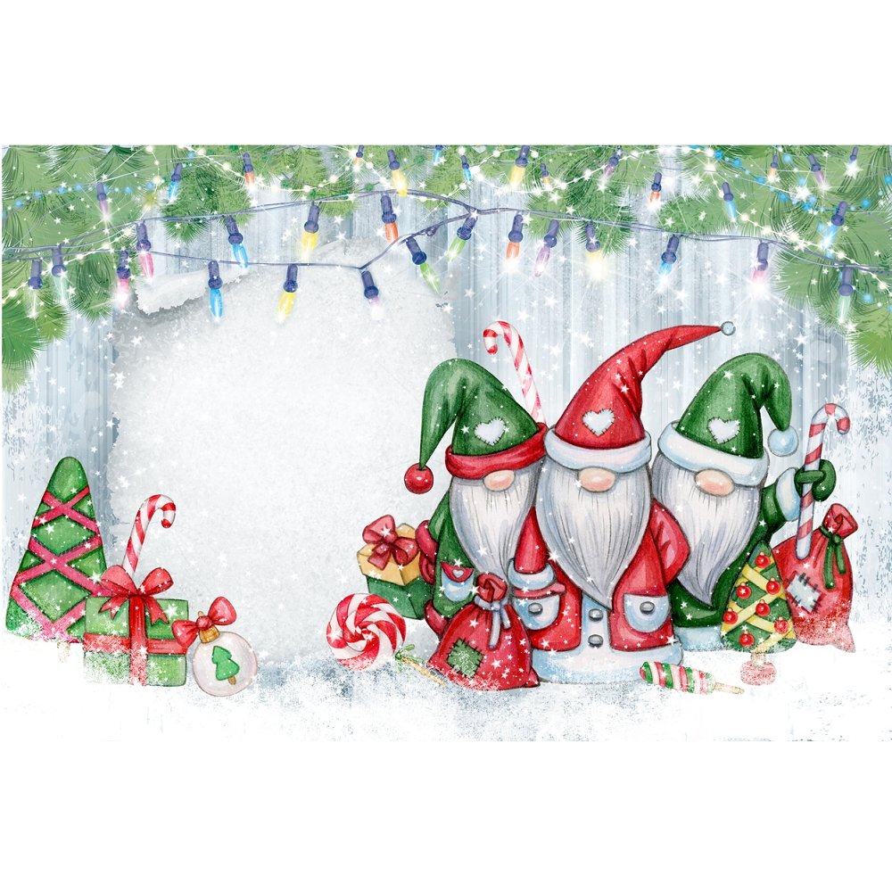 Snowy Christmas Gnomes Christmas Card Fabric Panel - Gray Details