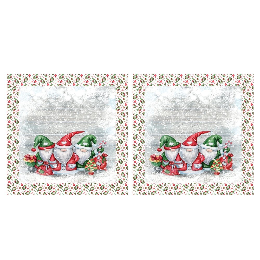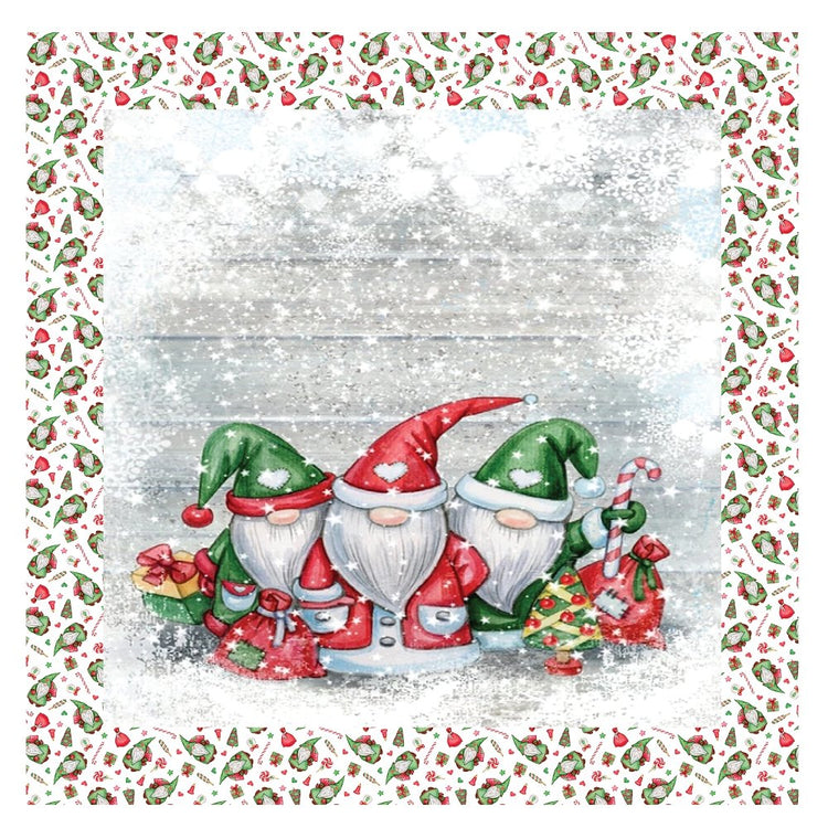 The Snowy Christmas Gnomes Pillow Panels is a part of the Pillow Panels Fabric Collection printed by Sew Creative Fabrics. Our pillow panels are designed to be extremely simple to put together, some other brands do not provide a 1/4-inch seam allowance, we provide a 2-inch border. Each pillow panel contains 2 pillow panels side by side. You can use the second panel as backing or purchase a yard of Christmas Symbols Gnome Fabric - White to have the backing the same as the border print.