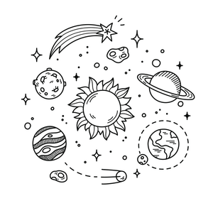 The White Solar System Doodle Fabric Panel is part of the Outer Space Fabric Collection printed by Sewing Parts Online. This panel is digitally printed on 100% cotton. The fabric panel is available in 6 different sizes: