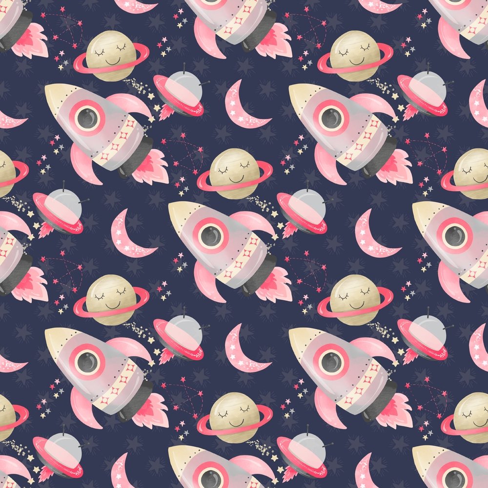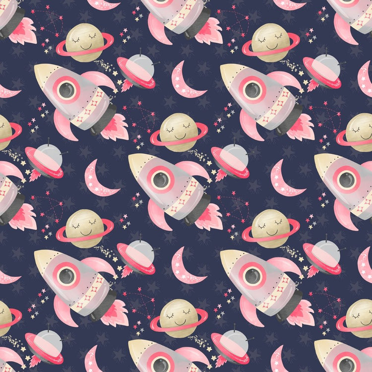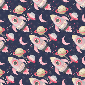 The Navy Space Girls Rocket Ships Fabric is part of the Space Girls Fabric Collection printed by Sew Creative Fabrics. Digitally Printed on 100% cotton.