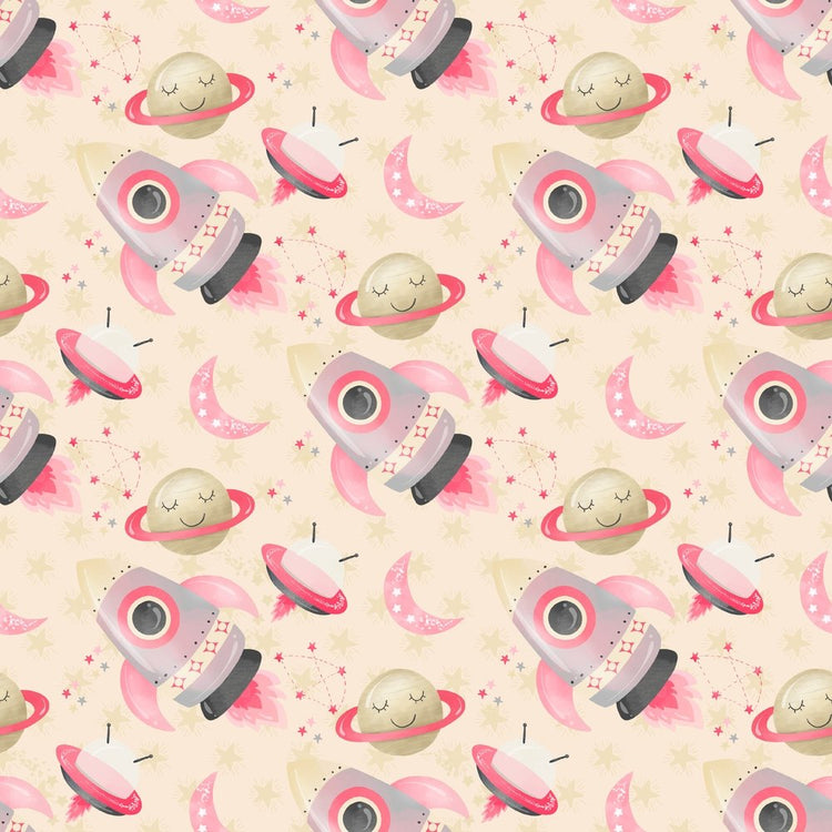 The Yellow Space Girls Rocket Ships Fabric is part of the Space Girls Fabric Collection printed by Sew Creative Fabrics. Digitally Printed on 100% cotton.