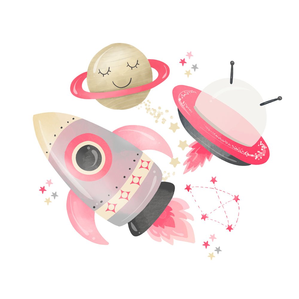 The Space Girls Scene 2 Fabric Panel is part of the Space Girls Fabric Collection printed by Sewing Parts Online. Digitally Printed on 100% cotton. This panel is available in 6 different sizes: