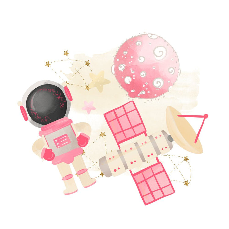 The Space Girls Scene 3 Fabric Panel is part of the Space Girls Fabric Collection printed by Sewing Parts Online. Digitally Printed on 100% cotton. This panel is available in 6 different sizes: