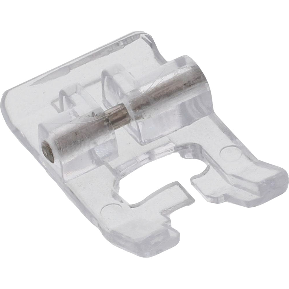 Use the clear view satin stitch foot to create omnimotion, scallop, or 4 way stitches. Create beautiful borders and edgings on projects. The clear center portion provides great visibility while sewing.