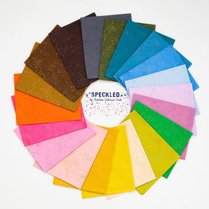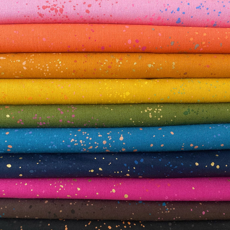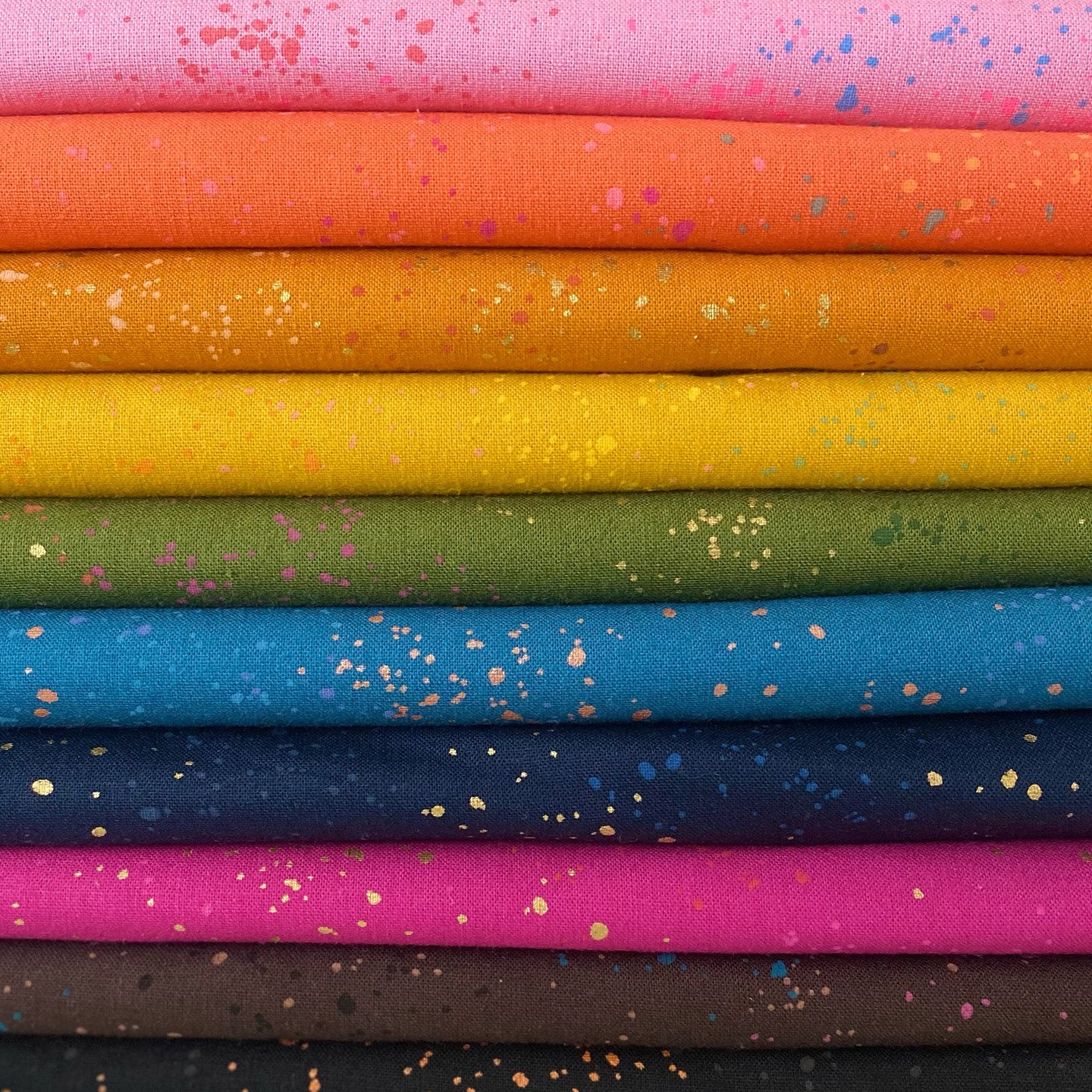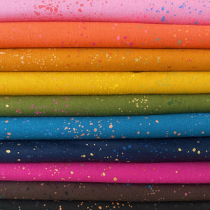 Bring a burst of modern texture to your quilting and sewing projects with the Speckled Fabric Collection from Rashida Coleman-Hale for Moda Fabrics. This versatile line features a playful paint-splatter design layered over a solid-dyed Ruby Star Cotton base, creating depth and movement that feels both organic and contemporary. Many designs are enhanced with subtle metallic accents that catch the light for a gentle shimmer, while others feature matte finishes for a soft, understated look.
