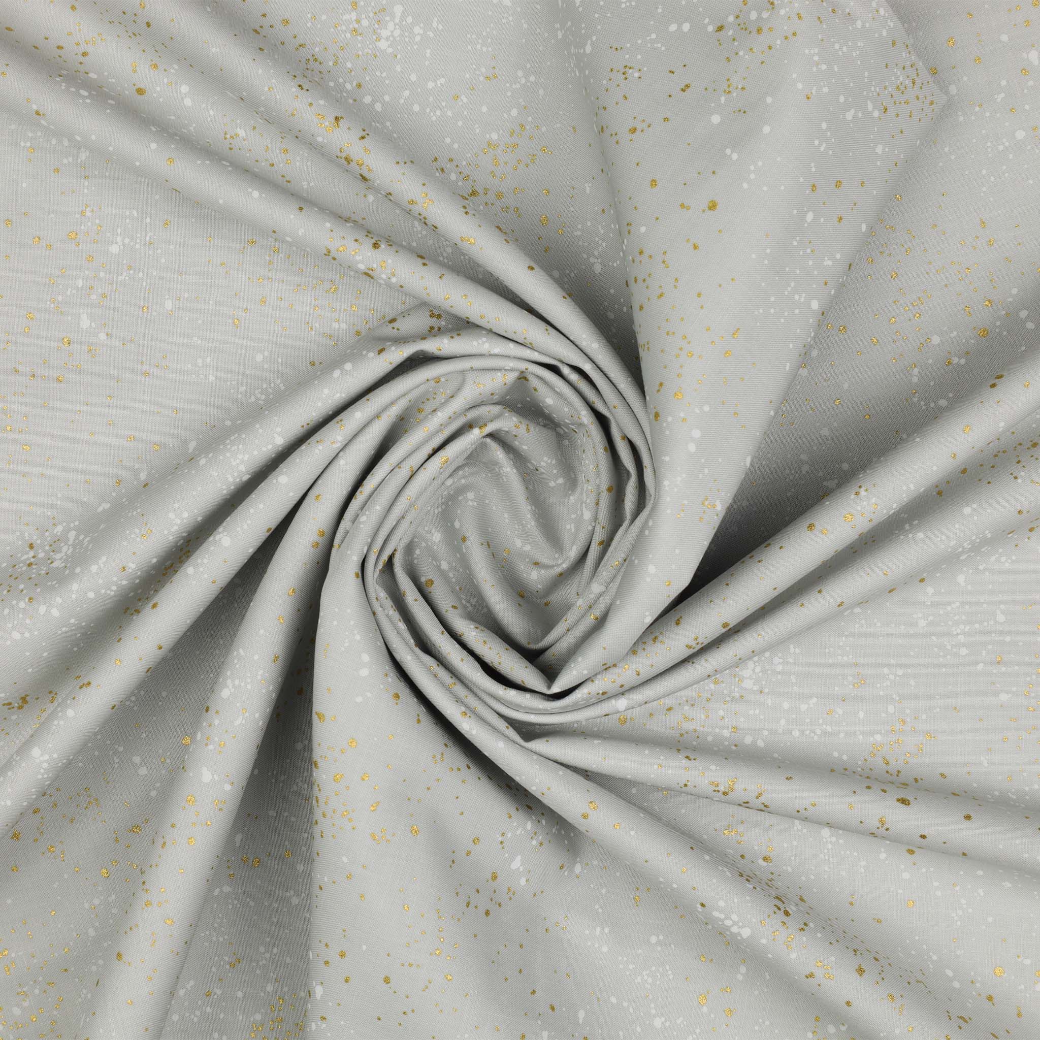 Graceful and understated, the Dove print from the Speckled Collection pairs a soft gray backdrop with scattered flecks of white and shimmering gold. The splattered effect creates a subtle sense of movement, adding just enough texture to keep the design lively without overwhelming. Ideal for use as a calming blender or a sophisticated accent, Dove lends a touch of refinement and quiet sparkle to quilts, garments, and accessories.