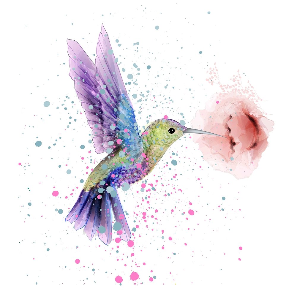 Splash Paint Hummingbird Fabric Panel - Purple Details