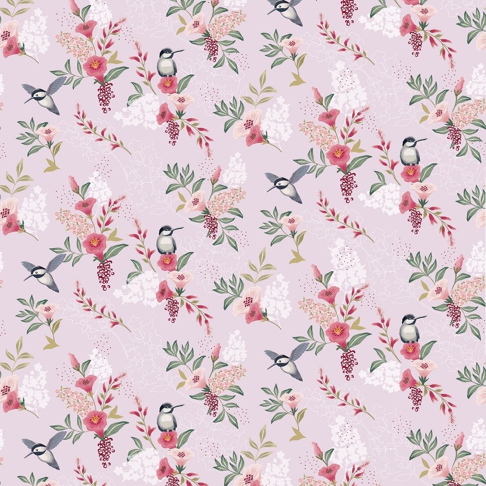 Spring Flowers & Birds Fabric - Pink Details