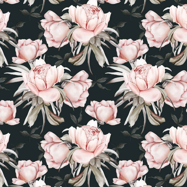 The Black Spring Peonies Bouquets Fabric is part of the Vintage Elegance Fabric Collection printed by Sew Creative Fabrics. Digitally Printed on 100% cotton.