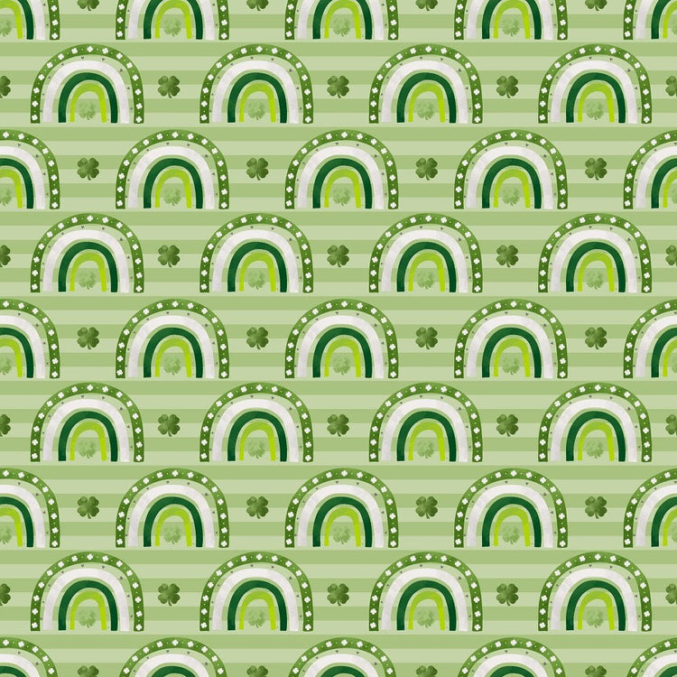 The Green St Patrick's Day Gnomes Rainbows Fabric is part of the St Patrick's Day Gnomes Fabric Collection printed by Sew Creative Fabrics. Digitally Printed on 100% cotton.