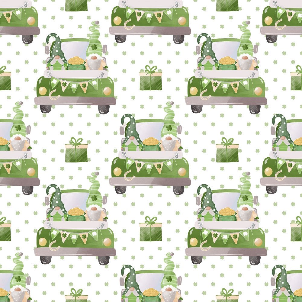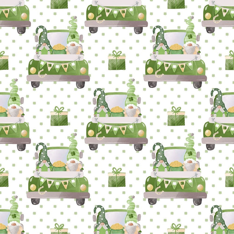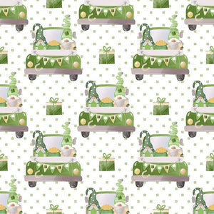 St Patrick's Day Gnomes Truck Fabric - White Details