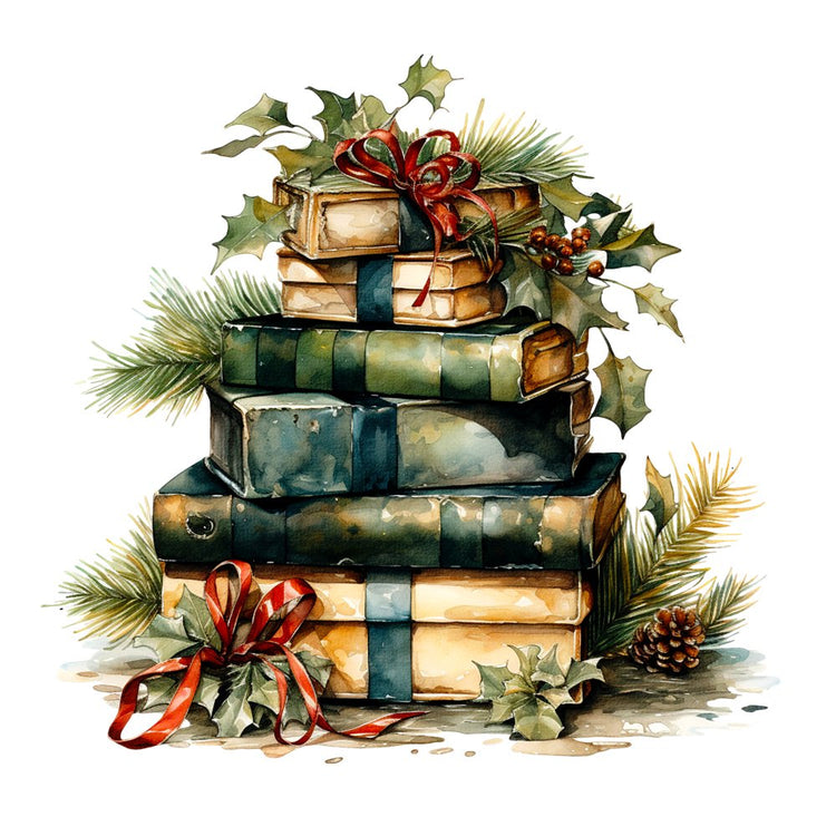 Stacked Christmas Books #2 Fabric Panel