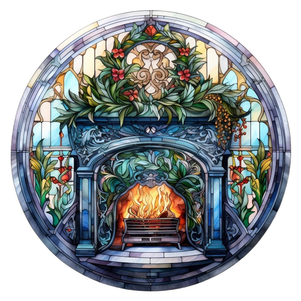 The Stained Glass Blue Fireplace Fabric Panel is part of the Christmas Stained Glass Ornaments Fabric Collection printed by Sew Creative Fabrics. Digitally Printed on 100% cotton. This panel is available in 6 different sizes:
