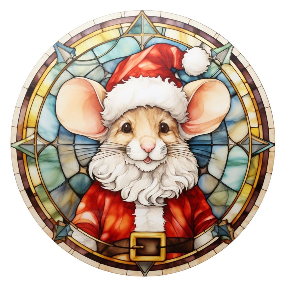 Stained Glass Santa Mouse Fabric Panel