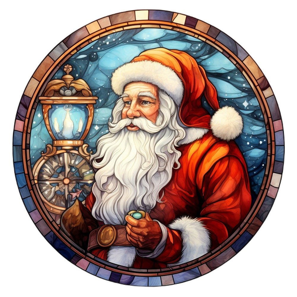 Stained Glass Santa with Lantern Fabric Panel