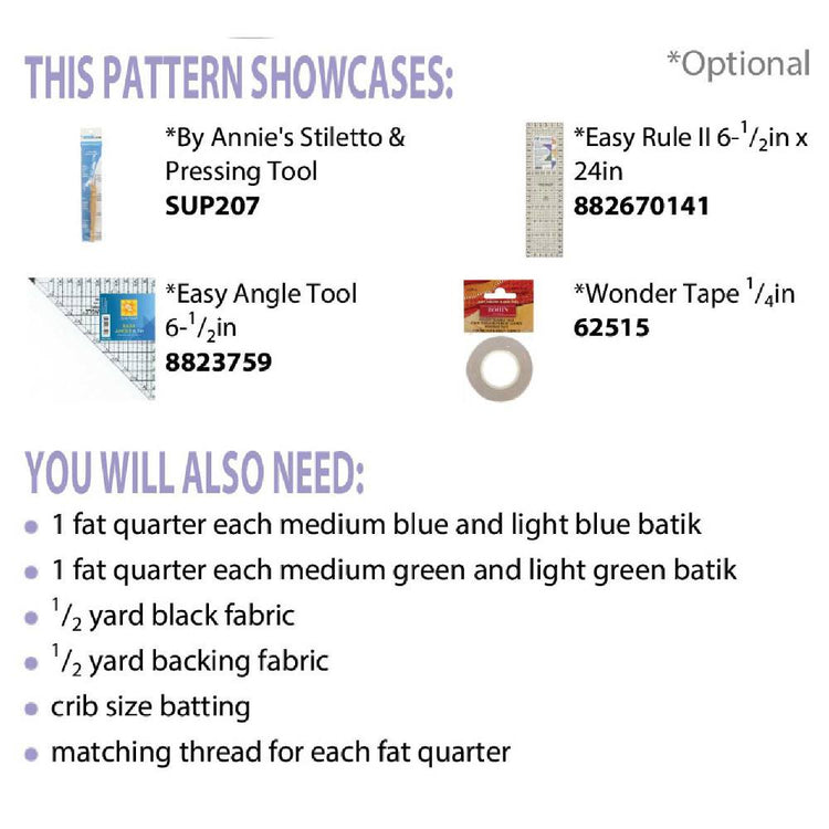 The Stained Glass Table Runner Pattern, designed by Kris Holderness, makes a 13 inch by 31-inch table runner. This fat quarter friendly pattern can be completed in just over six hours. The pattern includes full instructions as well as a list of fabric and tool requirements.