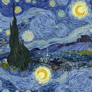 The Starry Night Fabric is a part of the Starry Night Fabric Collection printed by Sew Creative Fabrics. Sew Creative Fabrics's Starry Night Fabric Collection is a rendition of Vincent van Gogh's Starry Night painting. Digitally Printed on 100% cotton and measures 43-44" wide. Sew Creative Fabrics prints are only available through Sewing Parts Online, not sold in stores or anywhere else online. * Proudly Manufactured in Dickson, Tennessee USA! *