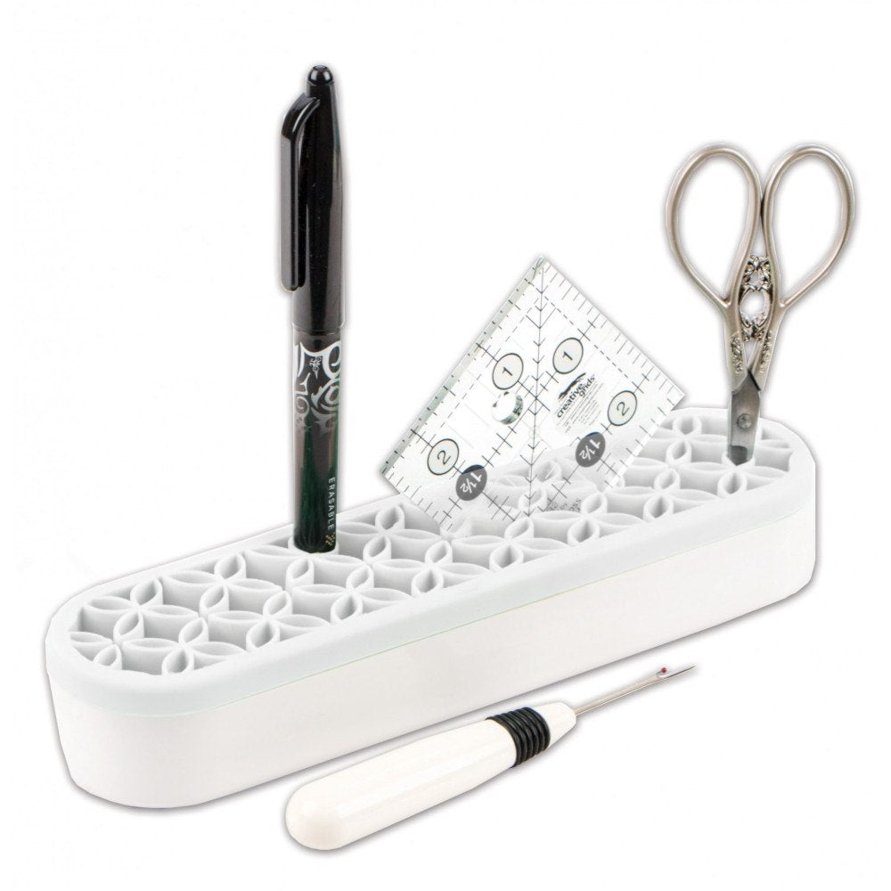 Besides seam rippers, scissors, and sewing notions, you can also store makeup brushes, nail files, eyeliners, and more in this compact organizer. With its silicone interior, it's easy to keep clean.