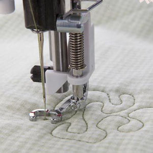 The Open Toe Free Motion Spring Foot gives clear visibility when doing free motion quilting of embroidery. Because of the open front, you can do stippling or follow a design in the fabric. The spring action keeps the fabric from lifting with the needle as the stitch is being formed which helps eliminate thread breakage with specialty or heavier threads. Be sure to use the appropriate needle for the thread you are using.