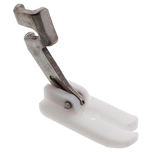 Non-Stick Feet are great for working with leather, laminated foam, rubber, and plastic fabrics. This foot is designed to eliminate drag and pucker while not damaging fabric. The small needle hole of this foot prevents the light weight fabric from "buckling" and causing puckering or skipped stitches.