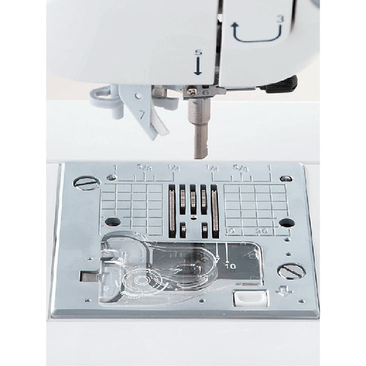 Use cover plate 40064685 (not included) with this straight stitch needle plate.