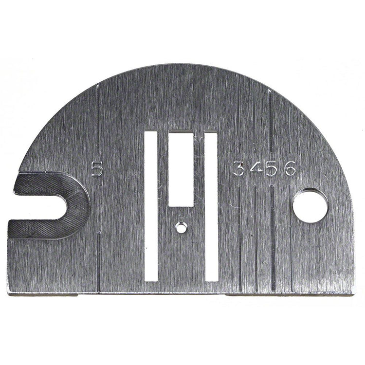 The straight stitch needle plate guarantees even fabric feed at the beginning and end of the seam, while avoiding the fabric from being pulled into the needle plate opening.