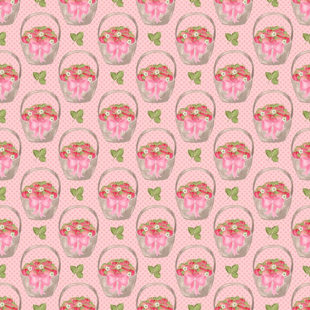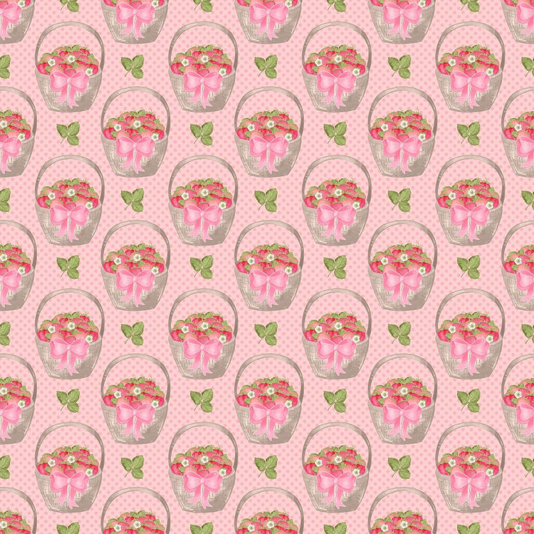 Strawberry Baskets on Dots Fabric - Light Pink Details