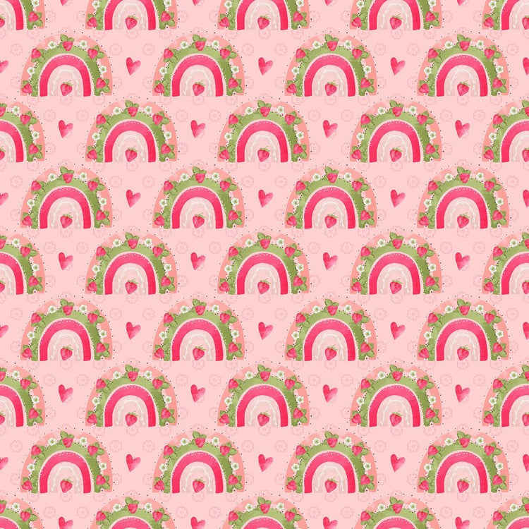 The Pink Strawberry Rainbows & Hearts Fabric is part of the Strawberry Rainbows Fabric Collection printed by Sew Creative Fabrics. Digitally Printed on 100% cotton.