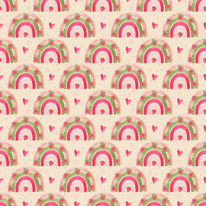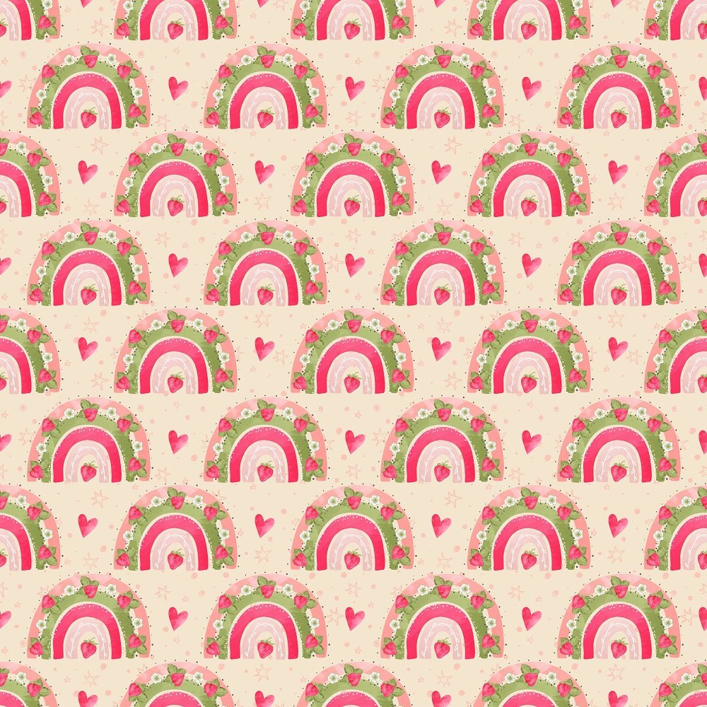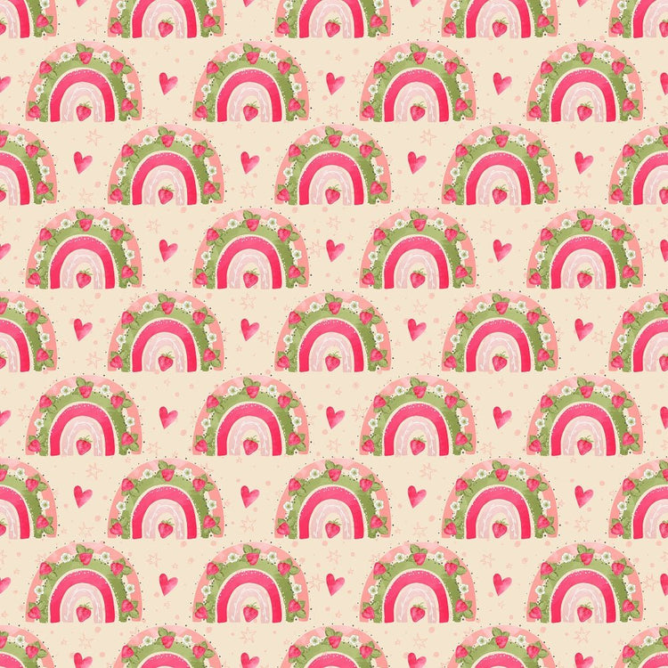 The Tan Strawberry Rainbows & Hearts Fabric is part of the Strawberry Rainbows Fabric Collection printed by Sew Creative Fabrics. Digitally Printed on 100% cotton.