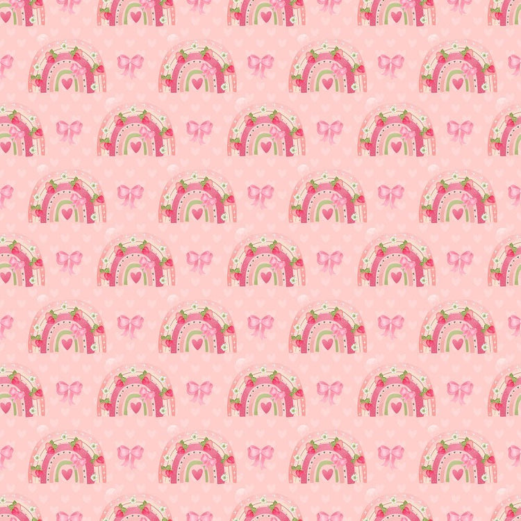 The Pink Strawberry Rainbows on Hearts Fabric is part of the Strawberry Rainbows Fabric Collection printed by Sew Creative Fabrics. Digitally Printed on 100% cotton.